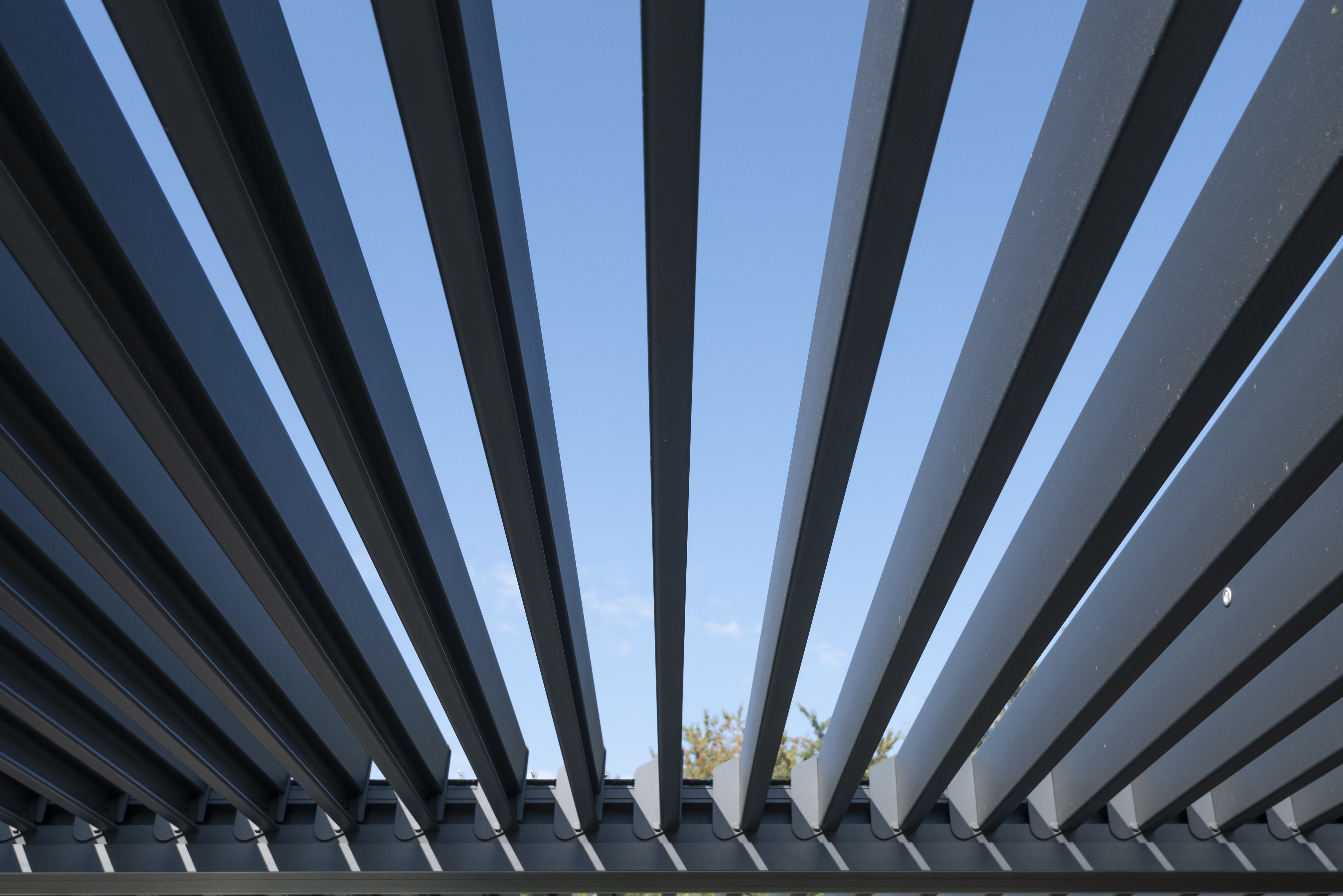 Nos pergolas à lames orientables sont conçues pour être à la fois simples à utiliser et extrêmement résistantes. Grâce à un mécanisme robuste, chaque lame s'ajuste facilement pour offrir le niveau de lumière et de ventilation que vous souhaitez. Ce système est fait pour durer, vous permettant de profiter pleinement de votre espace extérieur sans souci, année après année.